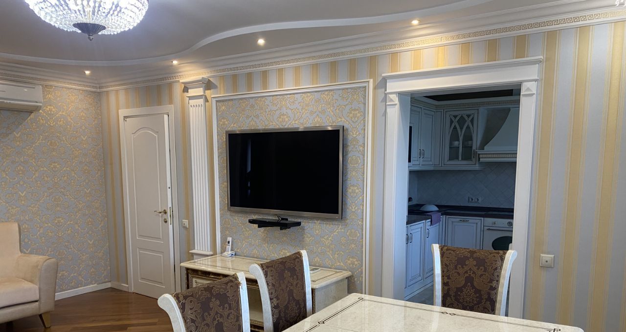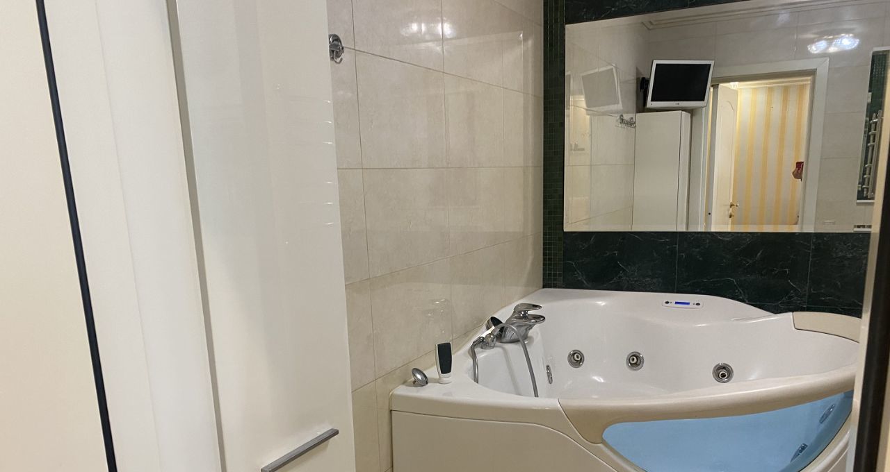 Стильная уютная и светлая квартира с качественным евроремонтом! Это объединенная двухкомнатная и однокомнатная квартиры. Укомплектована всем необходимым для яркого и комфортного проживания, полностью меблирована и оснащены необходимой бытовой техникой. Изолированные две комнаты. Большая кухня-гостинная. Два санузла совмещенный с ванной джакузи и раздельный санузел. Большая гардеробная. Кондиционеры. Три лоджии застекленные. В маленькую комнату спальное место будет куплено по запросу арендаторов.