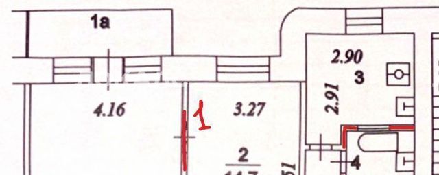 На планировке отмечено, что 1) сквозной проход между комнатами вместе с деревянной дверью закрыли гипсокартоном, при желании можно вернуть сквозной проход; и 2) была перепланировка: для увеличения площади ванную комнату объединили с кладовой, двигали мокрую точку.
