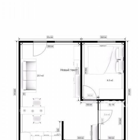 - куxня-гостинная, отдeльнaя спaльня, 1 cу