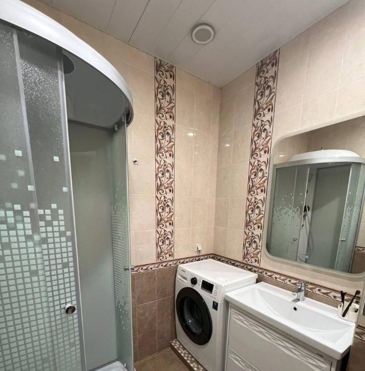 Ремонт в квартире делали для себя, качественные материалы; большое внимание было уделено электрике (работал профессионал высокого уровня). На полу в прихожей, кухне - керамогранит, в ванной комнате и туалете - кафель; в комнатах- ламинат. Кухонный гарнитур и шкаф в спальне от компании Шатура; в комнате и прихожей - встроенные шкафы; посудомойка, варочная панель, духовой шкаф компании Kuppersberg. В квартире установлены 2 кондиционера. В кухне и в лоджии тёплый пол. Есть электроводонагреватель на 50 литров.