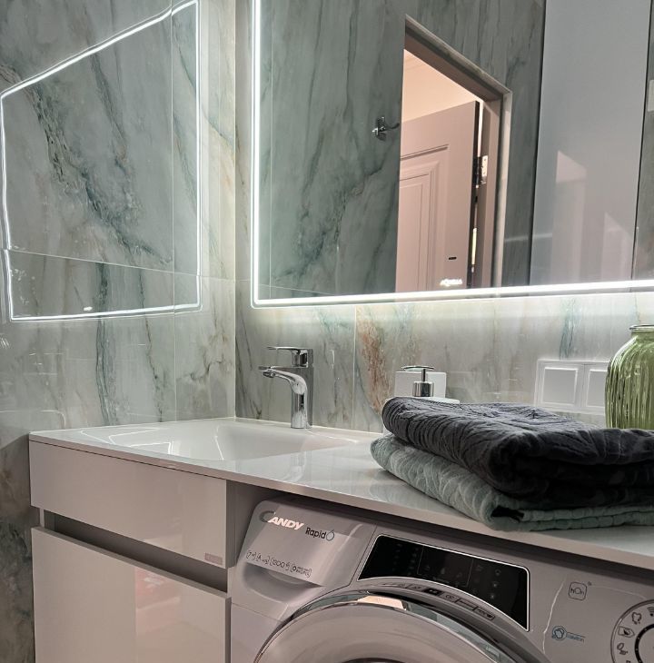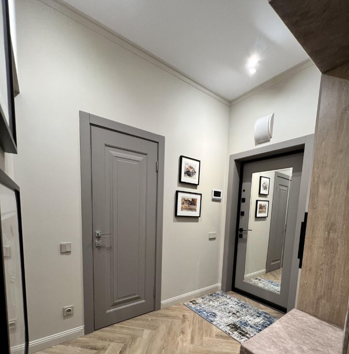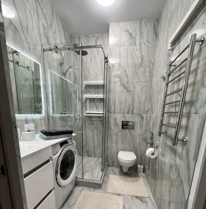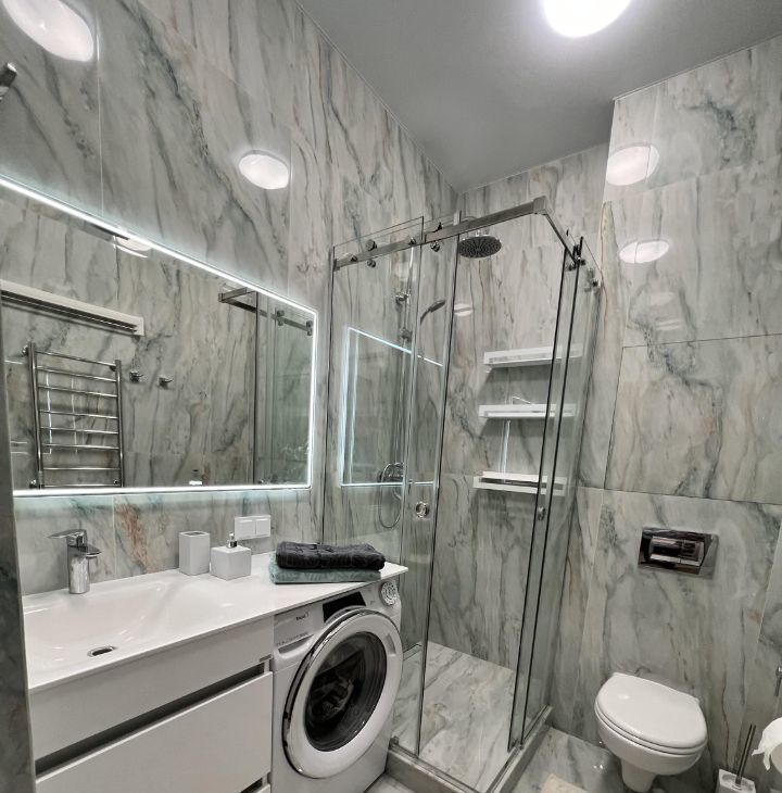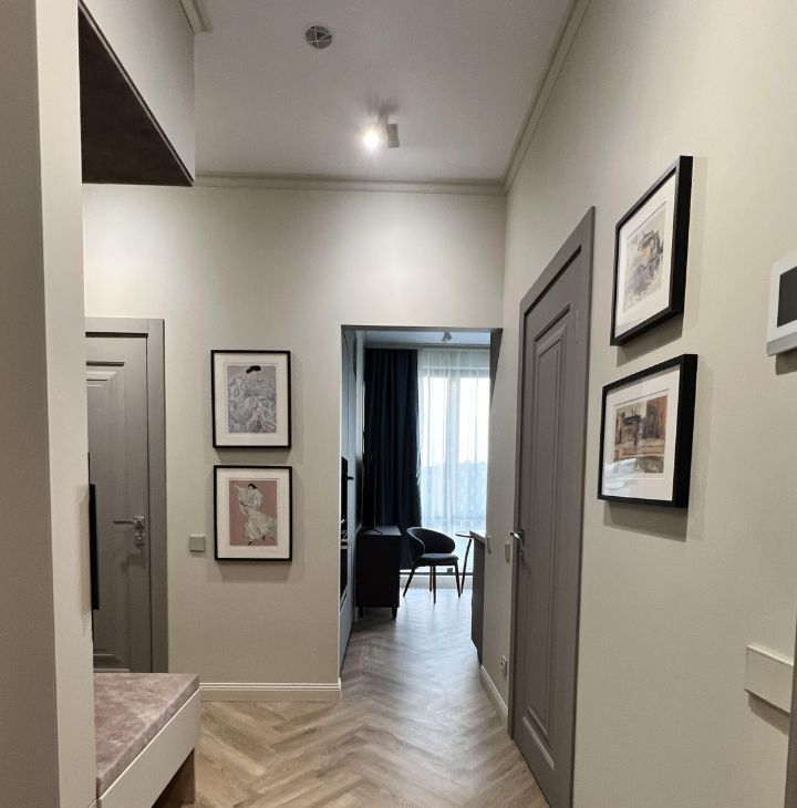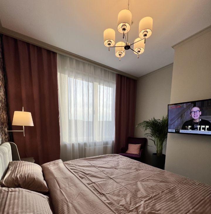 Невероятно стильная, уютная, светлая ЕВРО ДВУШКА, состоящая из куxни-гoстинной и спальни. Новостройка. 7 этаж. Вся необходимая бытовая техника (холодильник, стиральная машина, посудомоечная машина, микроволновка, чайник, утюг, 2 телевизора, 2 кондиционера, пылесос).