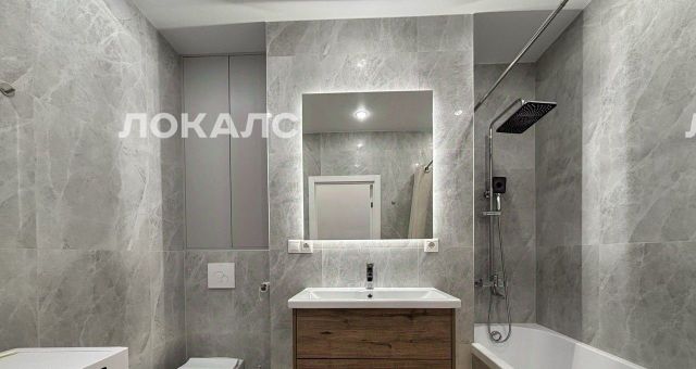 Зеркало с подсветкой и подвесная тумба с раковиной.