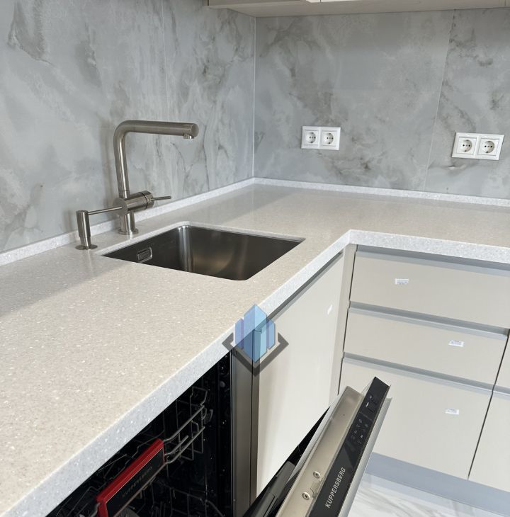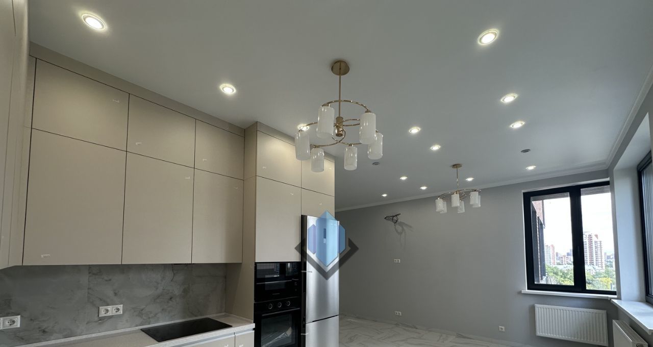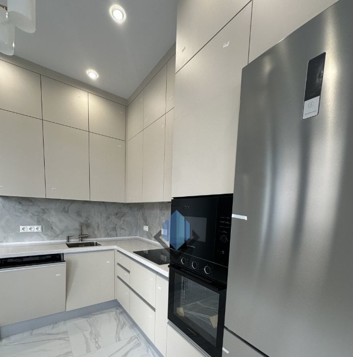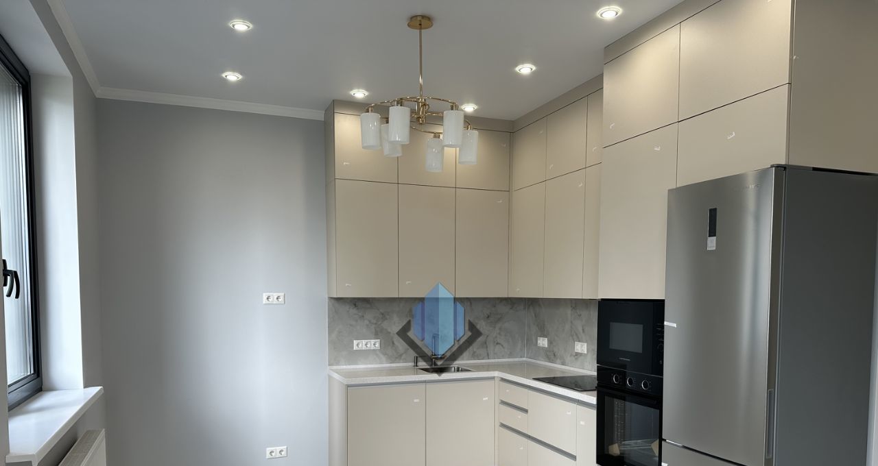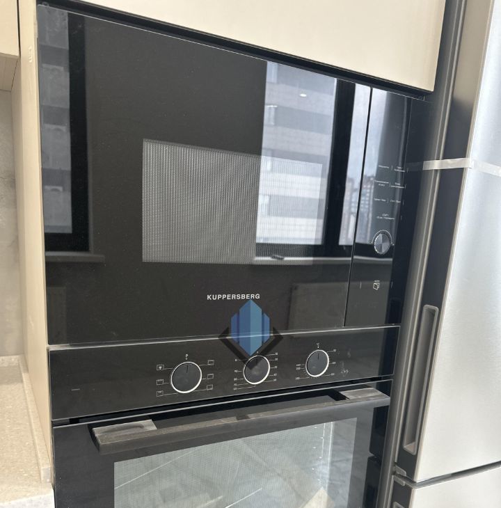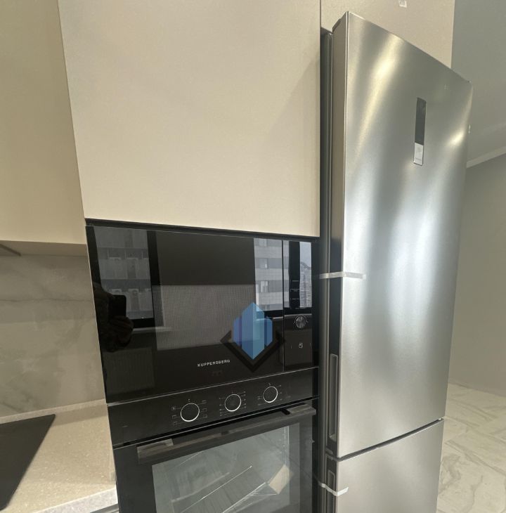 Выполнен ремонт, установлена кухонная мебель со встроенной бытовой техникой.
