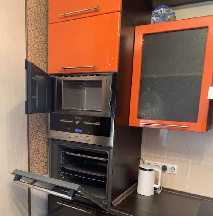 Встроенная кухня с посудомоечной машиной, духовым шкафом, микроволновой печью , плита стеклокерамика .