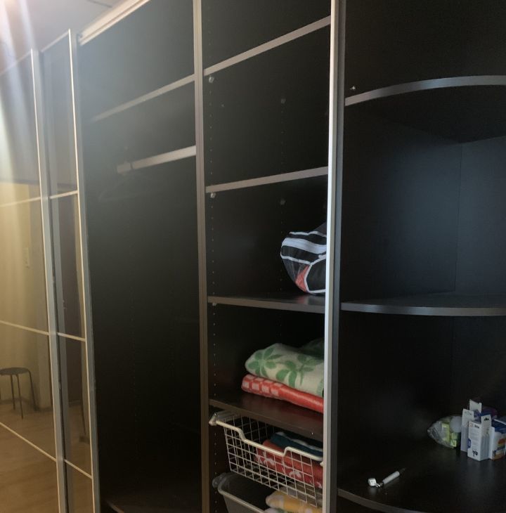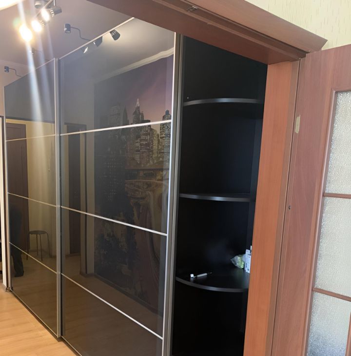 В коридоре огромный шкаф - купе - система хранения одежды и вещей .
