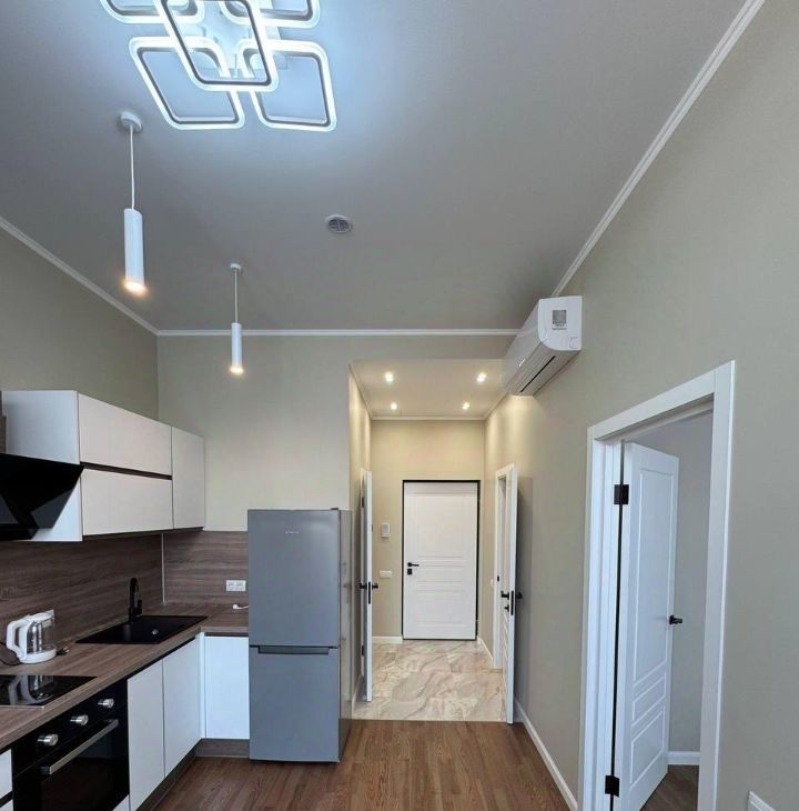 В квартире есть всё необходимое для комфортного проживания. Мебель установлена на кухне и в комнатах. Из техники: кондиционер, холодильник, посудомоечная машина, телевизор, стиральная машина. Ванная комната оборудована душевой кабиной и совмещена с санузлом. Окна выходят на улицу, поэтому в квартире много света и свежего воздуха.