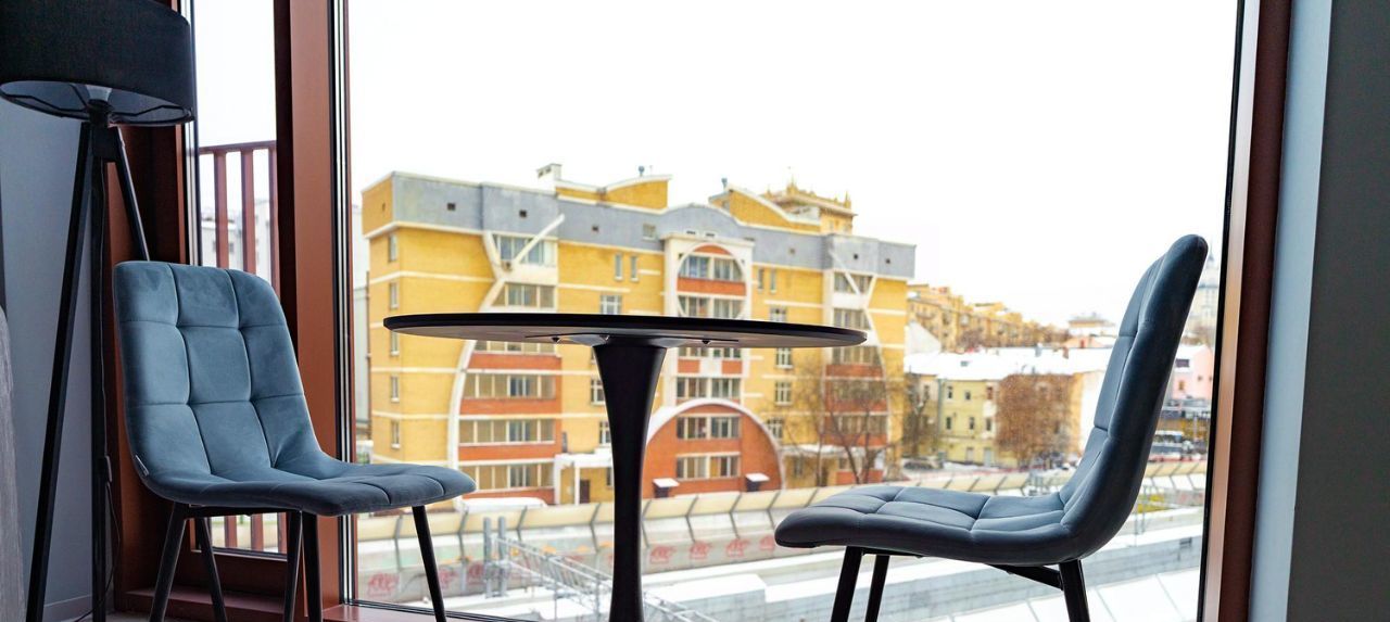 Большие панорамные окна наполняют пространство светом весь день и выходят на две стороны света. Два огромных окна в гостиной из которых видно две сталинские высотки и уникальное освещение, изысканный интерьер из натурального дерева и камня подарят Вам незабываемые впечатления от пребывания в апартаментах.