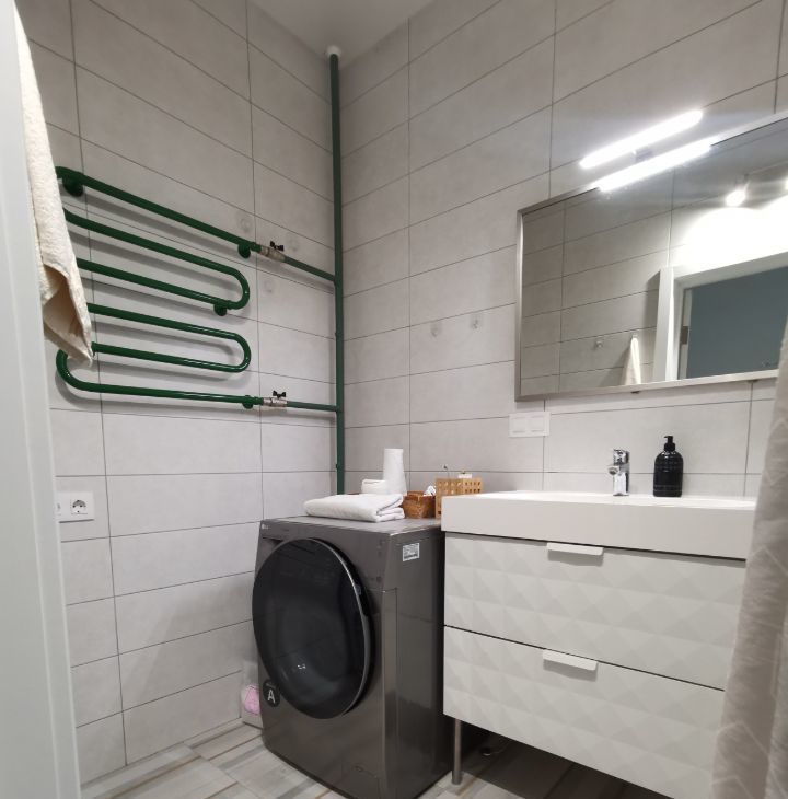 Квартира полностью укомплектована техникой и оборудованием: посудомоечная машина, холодильник, большая стиральная машина с сушкой, кондиционер, тёплый пол в ванной, датчики протечки, гигиенический душ и премиальная сантехника. Много мест для хранения, проведён высокоскоростной интернет. Накопительный водонагреватель обеспечивает горячую воду круглый год, включая летние отключения.