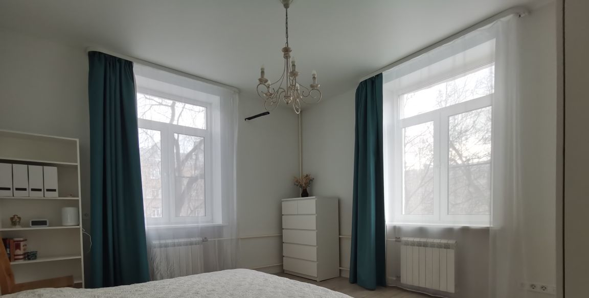 Изолированные комнаты, 3-й этаж, высокие потолки, открытый балкон. Окна выходят в закрытый зелёный двор без уличного шума.