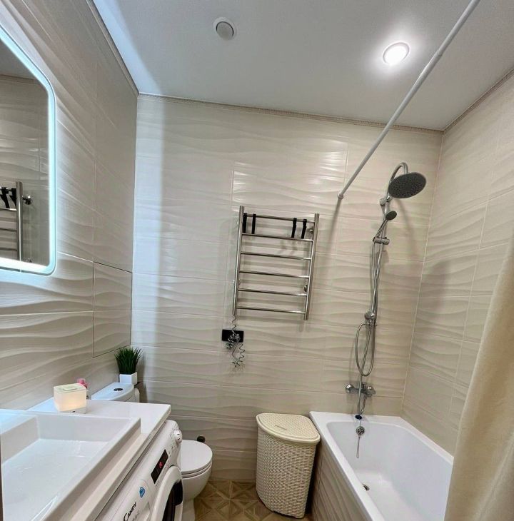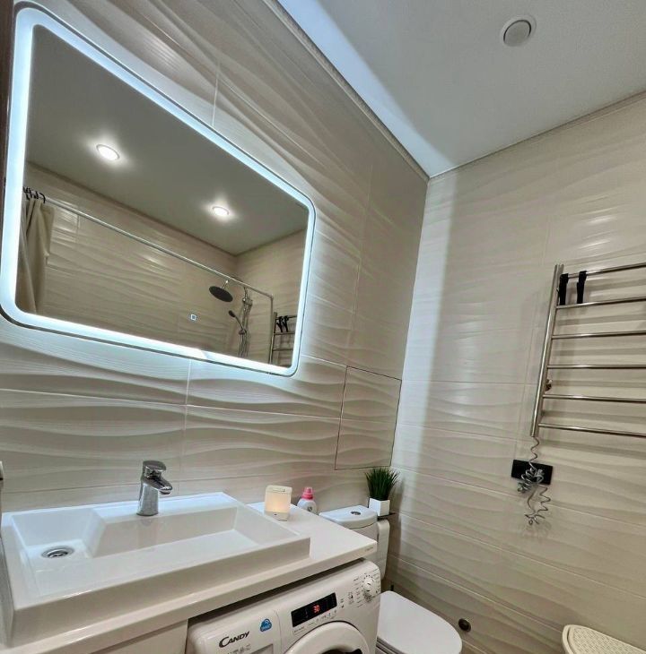 Дизайнерский ремонт и дорогая мебель/техника (все делалось для себя, качественные материалы). Премиальная сантехника, стеклопакеты Rehau. Вся необходимая посуда и техника для комфортной жизни. Удобный раскладной диван. Спальня с кроватью 200x160 и матрасом Ascona. Вместительный шкаф-купе, большой балкон с местом для хранения. Кондиционер, телевизор, Wi-Fi. Стиральная машина, беспроводной пылесос.