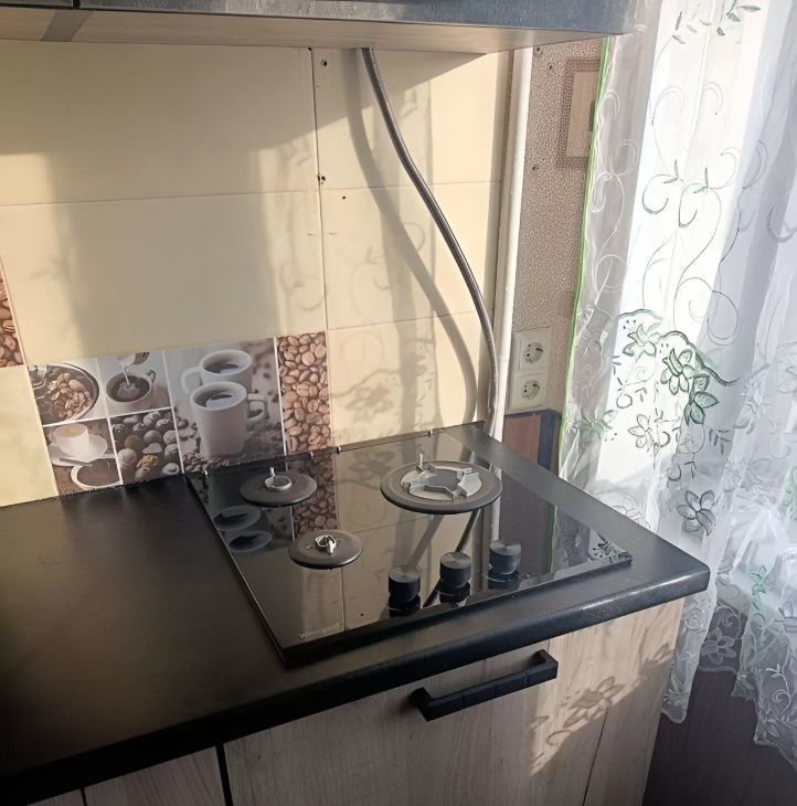 •Кухня оборудована необходимой техникой, включая холодильник и встроенная газовая панель.