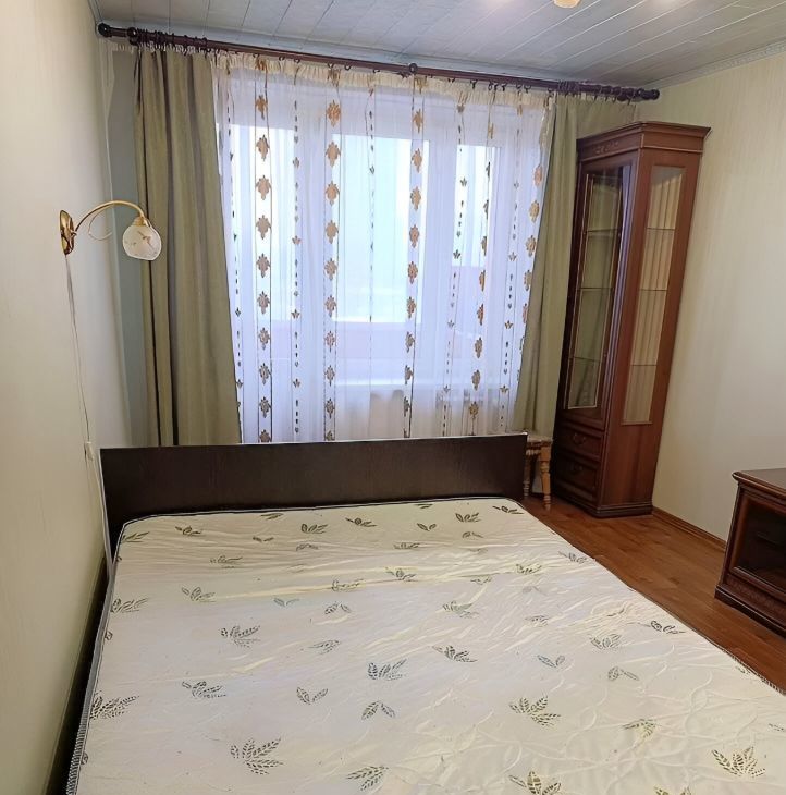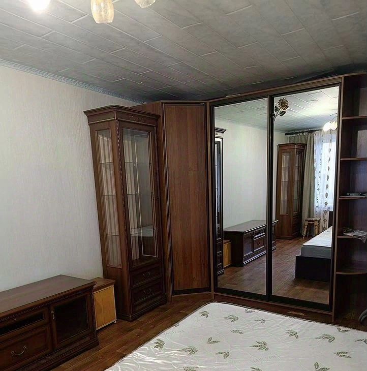 •В спальне установлен вместительный шкаф с зеркальными дверями, а также удобная кровать и диван.Для хранения вещей предусмотрены шкафы.