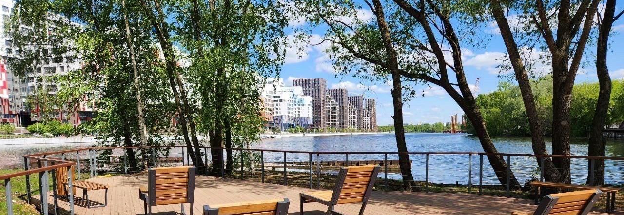 вся инфраструктура: рестораны, бары, кафе и проч. до метро Нагатинский затон 7 минут по мосту.