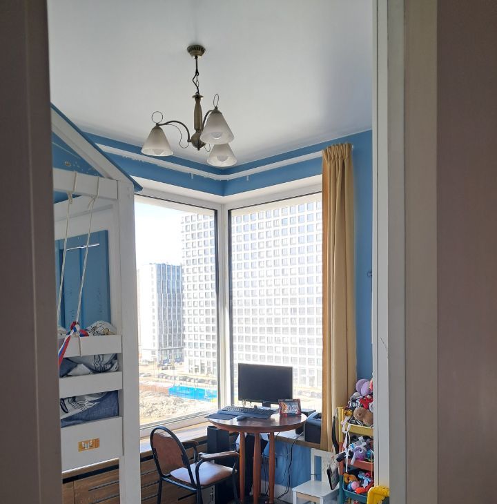 Кухня-столовая 20м, изолированные комнаты 13м - спальня и 10м - детская. Панорамное остекление по периметру, потолки 2.92. Окна на две стороны.