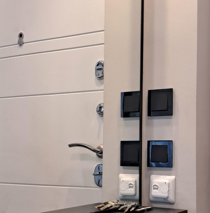 Подоконники по всему периметру внешних стен из массива дерева толщиной 4см, шириной 40см, можно использовать как места за обеденным столом. Радиаторы закрыты съемными щитами из массива дерева. Стены окрашены моющейся, устойчивой к механическим воздействиям премиум краской Vogel Diamond, на полу в комнатах инженерная доска, в ванной керамогранит 60х60см пол, стены керамогранит 60х120см, фасады мебели в ванной шпон и эмаль, сантехника Jacob Delafon, система антипротечек Нептун. Фасады кухни - эмаль. Полы без порогов, в коридоре, кухне и ванной с подогревом. Видеодомофон, централизованная пожарная сигнализация.