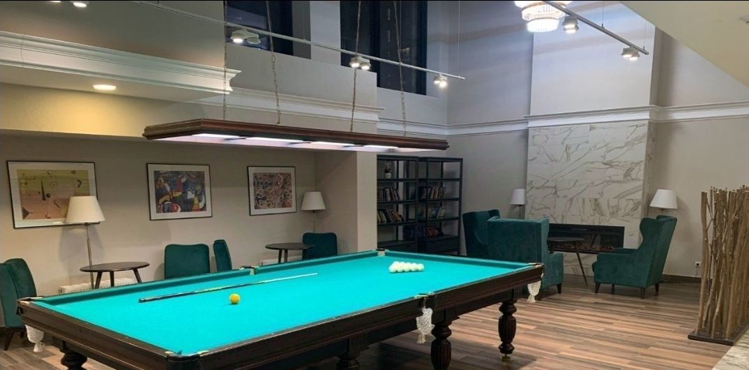 ЖК бизнес-класса: подземный и наземный паркинг, лобби с консьержем, видеонаблюдение, спортзал, бильярд, библиотека, детская комната. Закрытая территория, двор с детской и спортивной площадками, зоной барбекю.