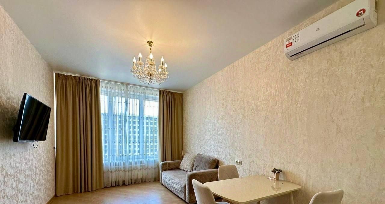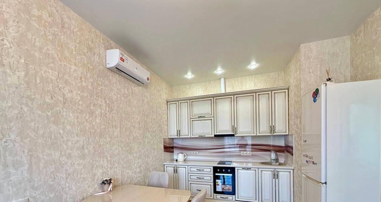 Квартира оснащена всей необходимой мебелью и бытовой техникой для комфортного проживания, включая посудомоечную квартиру и кондиционер.