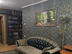 Состояние жилое. В гостинной- стенка, диван, журнальный столик. В спальной - тумбы, парта со стулом, выход на остекленный балкон. На кухне - гарнитур, плита, вытяжка, стол со стульями.