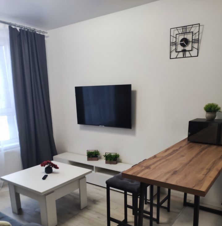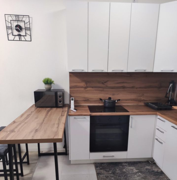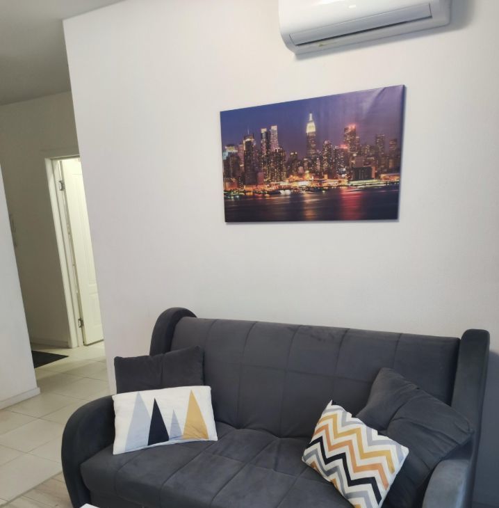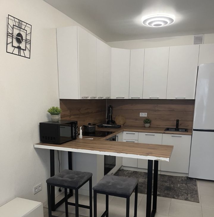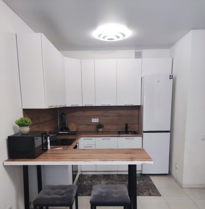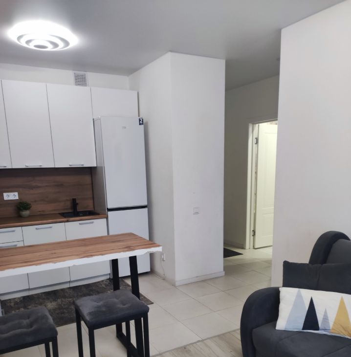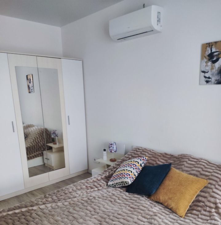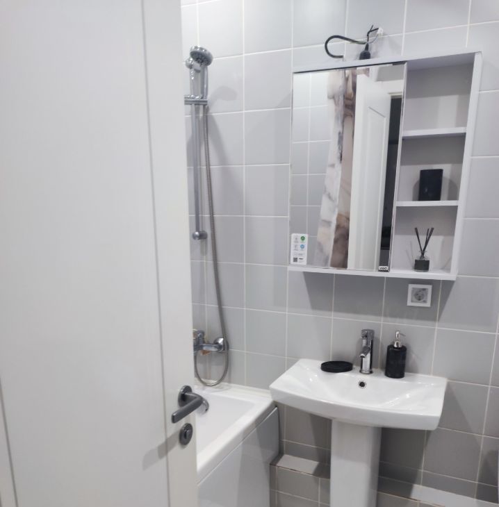 Квартира полностью обставлена и готова для комфортного проживания. В комнате и на кухне есть вся необходимая мебель. Из техники: 2 кондиционера, 2 телевизора, стиральная машина, микроволновая печь и холодильник. В совмещённом санузле установлена ванна, что особенно приятно для любителей расслабляющих водных процедур. Также проведён интернет, поэтому можно сразу подключиться к сети.