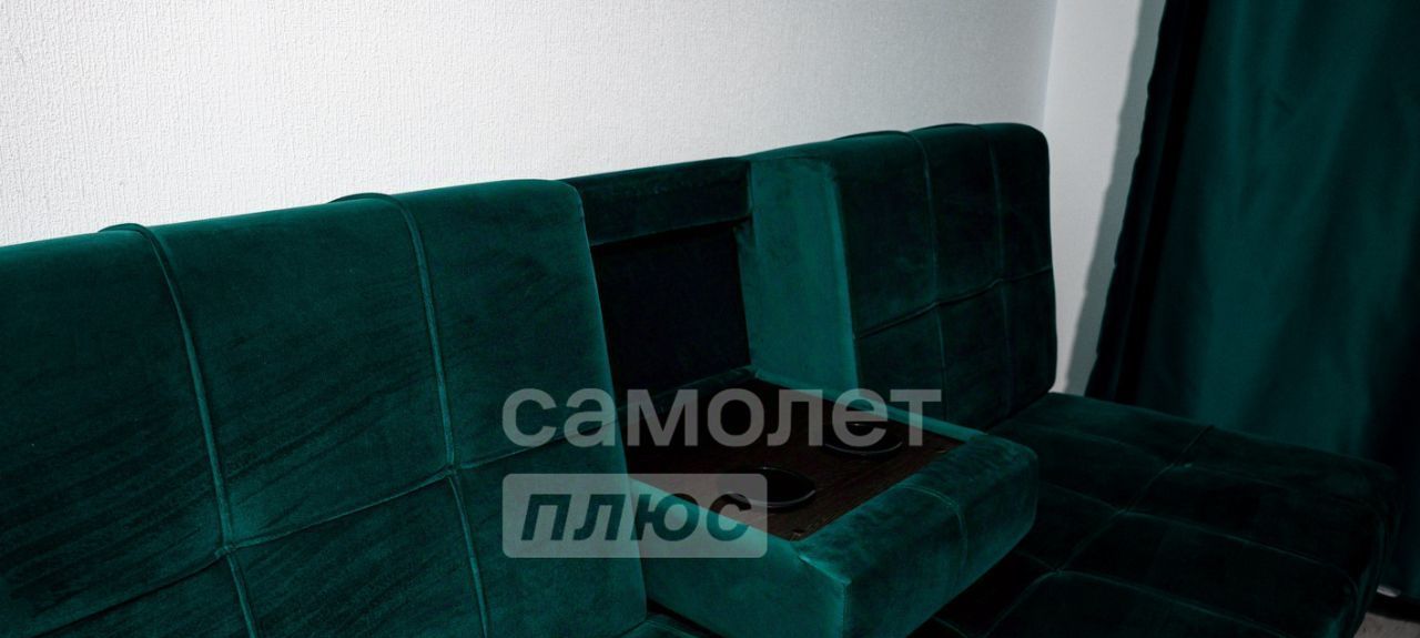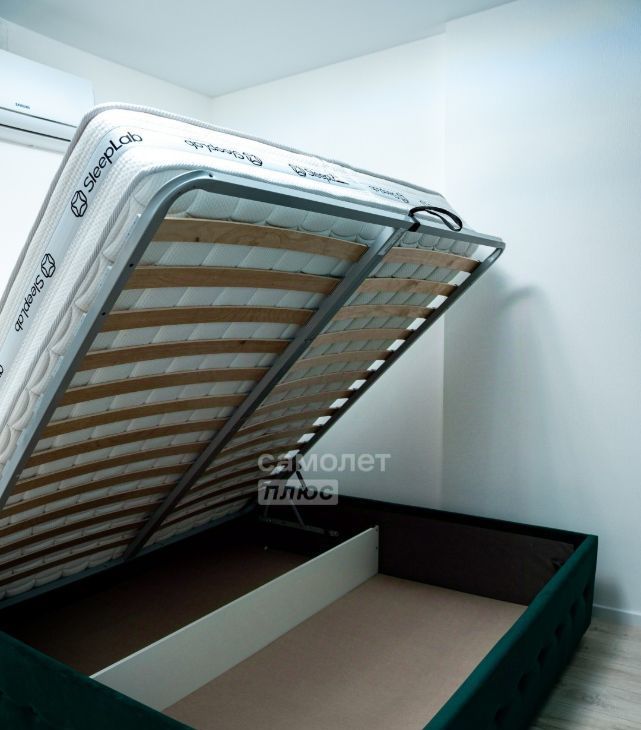 Из мебели: дизайнерские вращающиеся барные стулья. Раздвижной диван с подстаканниками для приятных вечеров за просмотров фильмов. Дизайнерский стол на платформе. Спальня Дизайнерская кровать с новым матрасом 28 см (180х200 см). Кровать с подъемным механизмом. Также встроена подсветка кровати с управлением цветом с телефонного приложения.