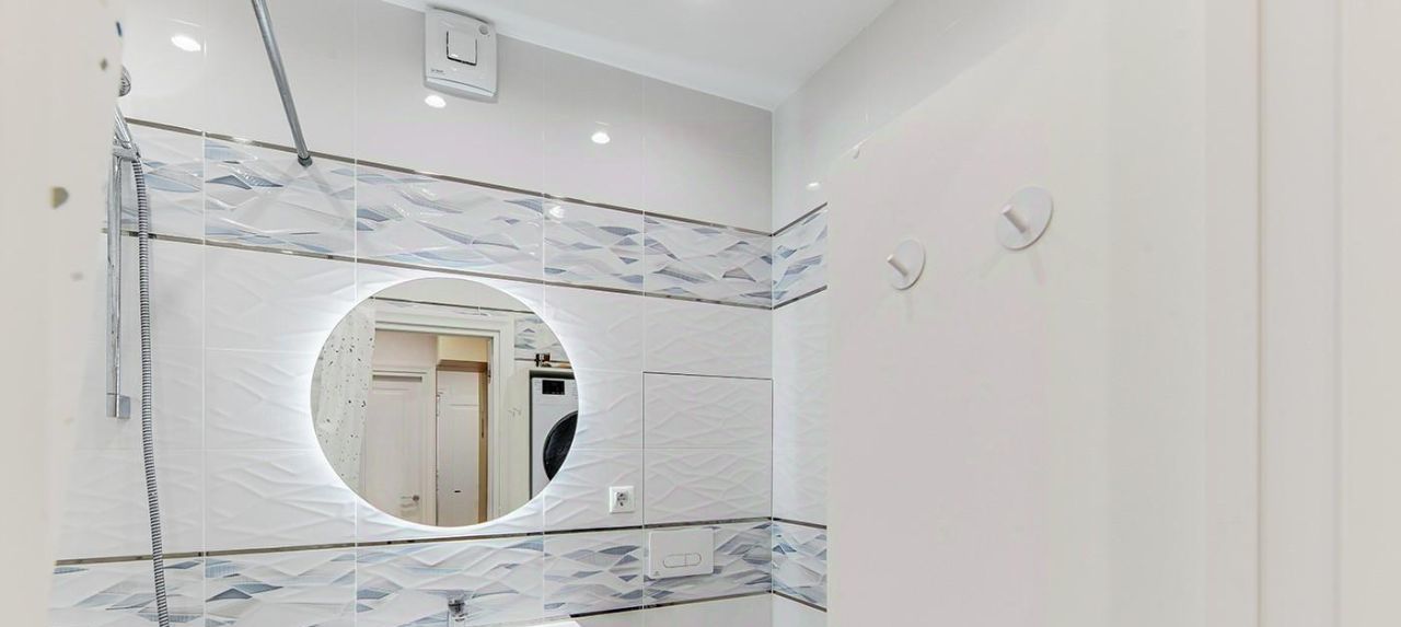 В санузле установлена качественная сантехника Hansgroe. Гарнитур и раковина Kerama Marazi. Качественный немецкий унитаз с микролифтом. Установлена новая стиральная и сушильная машина. Электрический полотенцесущитель с таймером и регулировкой мощности. Все коммуникации в стояках шумоизолированны. Установлена бесшумная вытяжка Soler Palau с датчиком уровня влажности и с автоматической регулировкой оборотов двигателя. Отсутствие влажности в санузле.