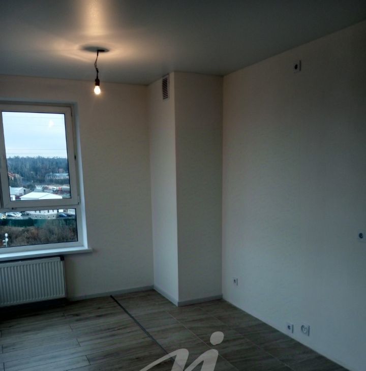 Кухню оборудуют мебелью и техникой в ближайшее время. Повесят светильники.
