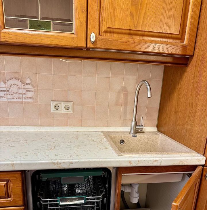 КУХНЯ полностью оборудована ВСТРОЕННОЙ ТЕХНИКОЙ (есть посудомоечная машинка),