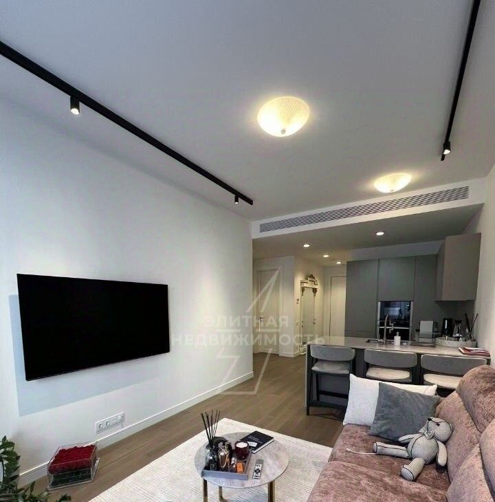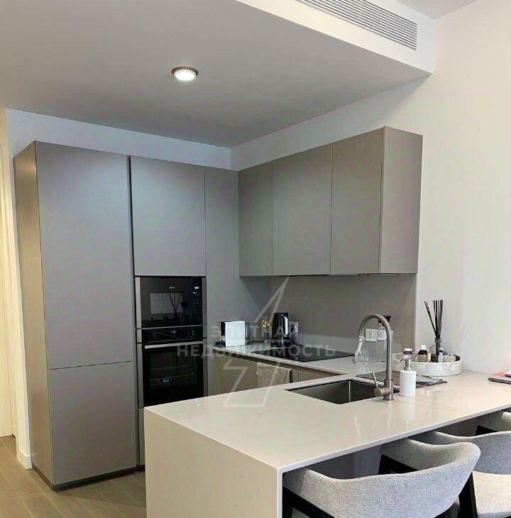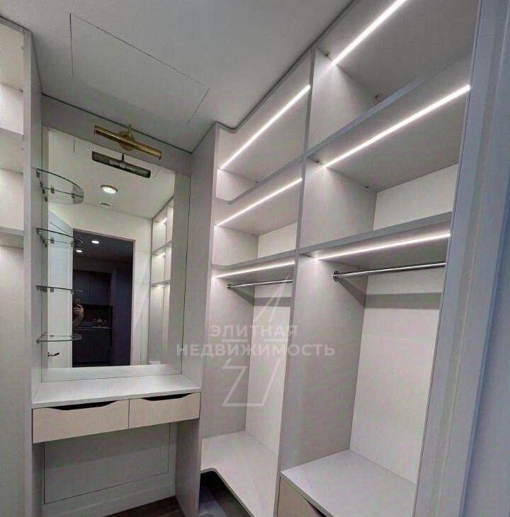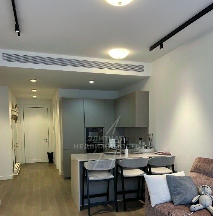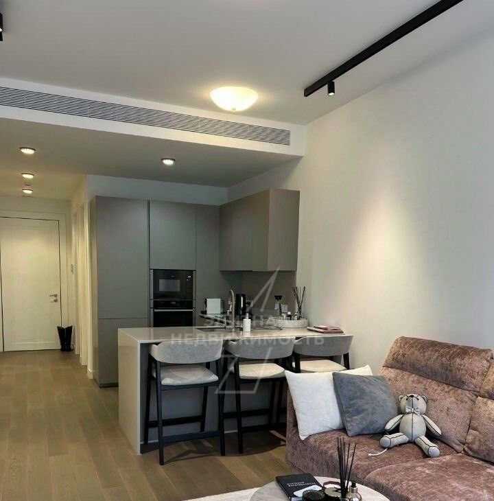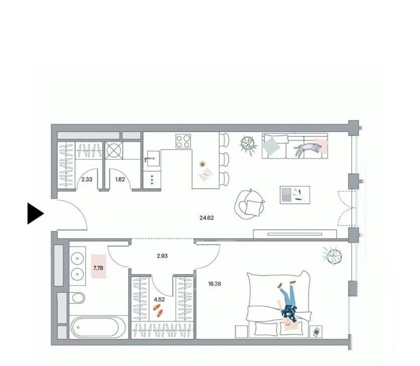 объединённая зона кухни и гостиной, отдельная спальня, две полноценные гардеробные, изолированная постирочная со стиральной машиной и функцией сушки, ванная комната.