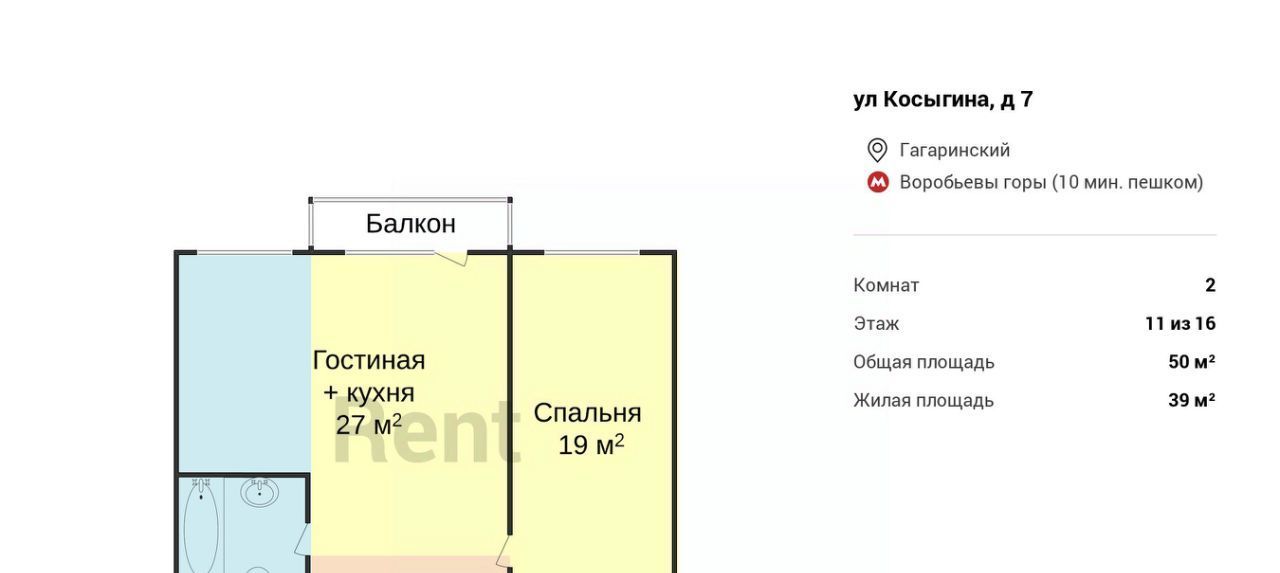 2-к кв. Москва ул. Косыгина, 7 (50.0 м²)