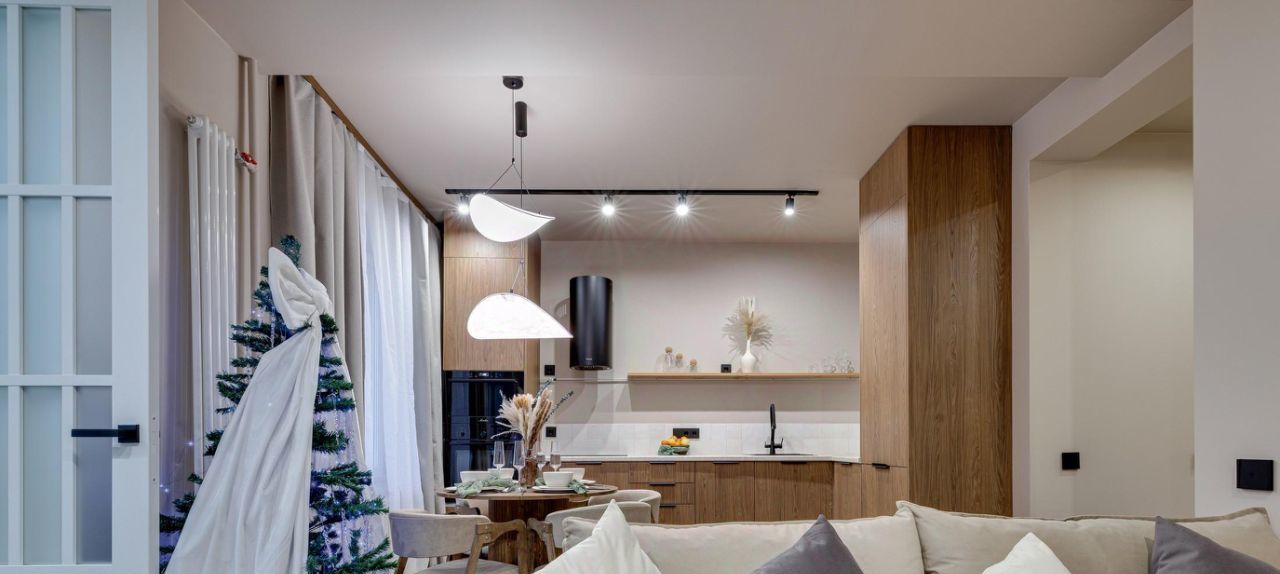 Квартира оборудована всей необходимой техникой известных брендов таких как Bosch/Indesit: посудомоечной машиной, духовым шкафом, встроенным холодильником, индукционной варочной панелью, стиральной машиной. Для удобства хранения в квартире расположен встроенный шкаф и две гардеробные, а также в подъезде имеется собственная кладовая площадью 2 кв.м., где можно разместить все необходимое. Просторная кухня-гостиная разделена на зону отдыха с диваном, который раскладывается в полноценное двуспальное место, и кухонной зоной. В каждом помещении продумано несколько сценариев освещения, которые придают особый уют и тепло. Вся мебель, техника и аксессуары остаются будущим владельцам. Одна комната оборудована под спальню с двуспальной кроватью и туалетным столиком, другая комната свободного назначения, которую вы сможете преобразовать по своему вкусу в детскую, мастерскую или рабочий кабинет.