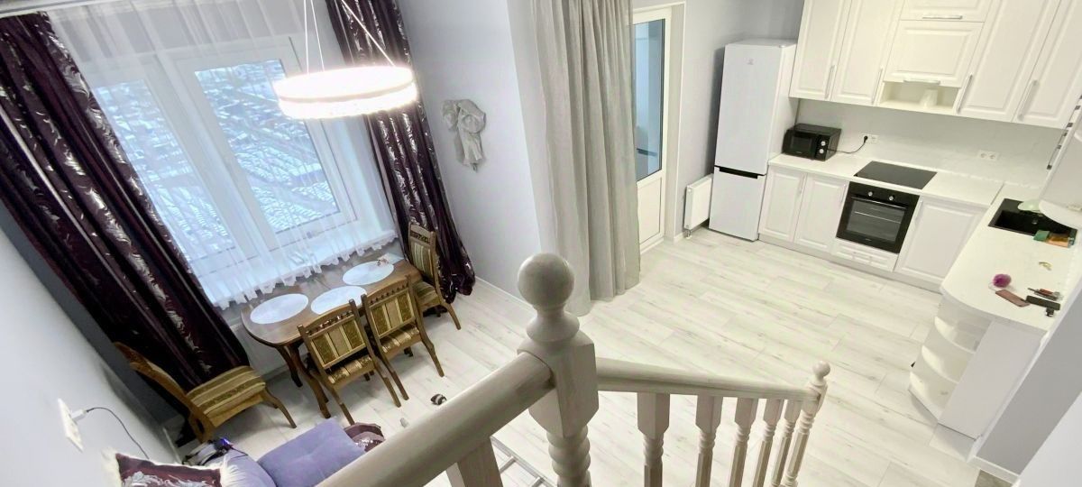Светлая двухуровневая квартира с хорошей планировкой для комфортного проживания.