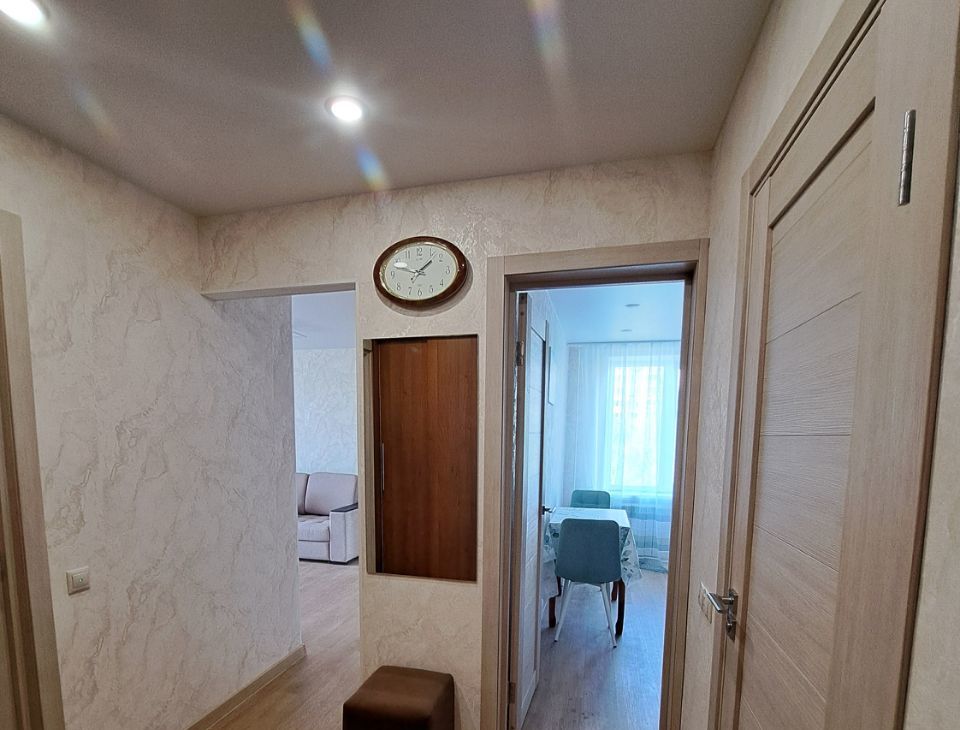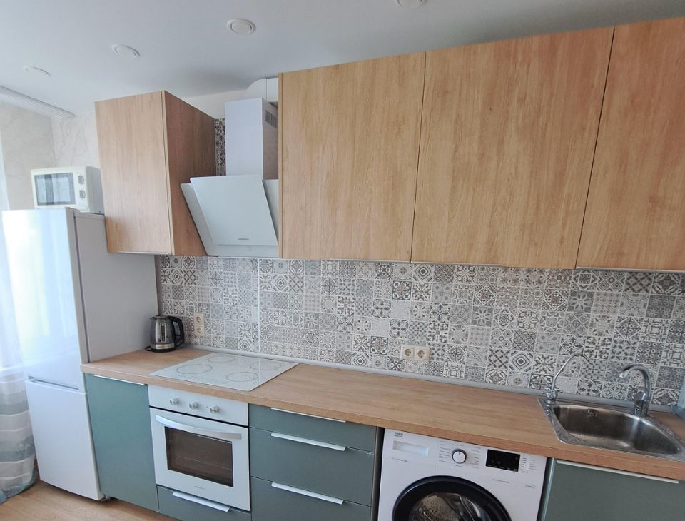 Квартира с евроремонтом, обставлена мебелью на кухне и в комнатах, что создает атмосферу уюта и комфорта. Окна выходят как во двор, так и на улицу, поэтому в квартире всегда светло. В наличии вся необходимая техника: холодильник, телевизор и стиральная машина. Санузел совмещенный, с ванной. Есть лоджия, где можно отдохнуть с чашкой чая.