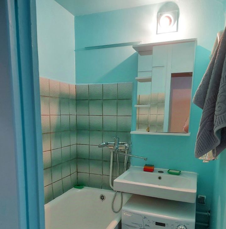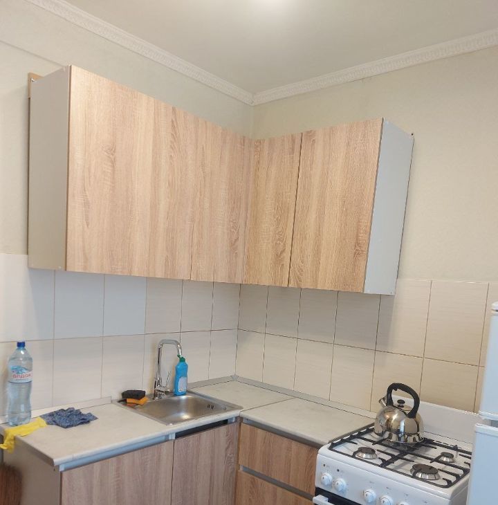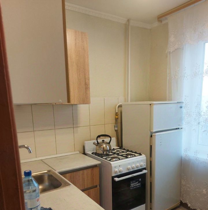 Тёплая, светлая квартира. Чистенькая, после косметики. Кухонный гарнитур, холодильник, стиральная машина, телевизор, два дивана. Одна комната изолированная, другая проходная.