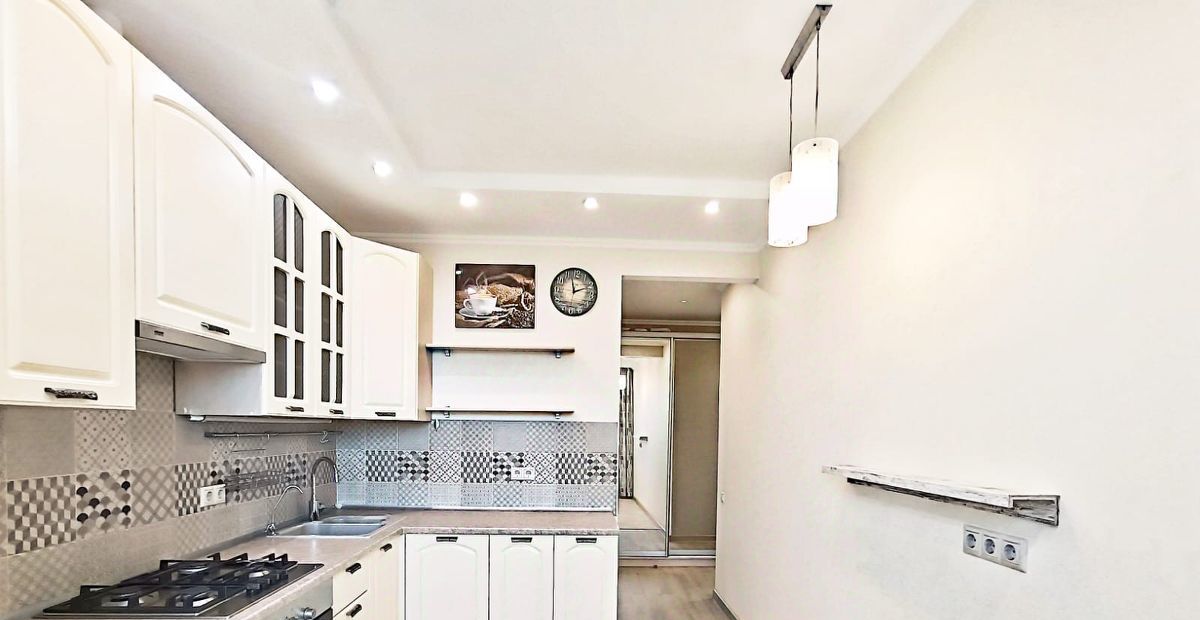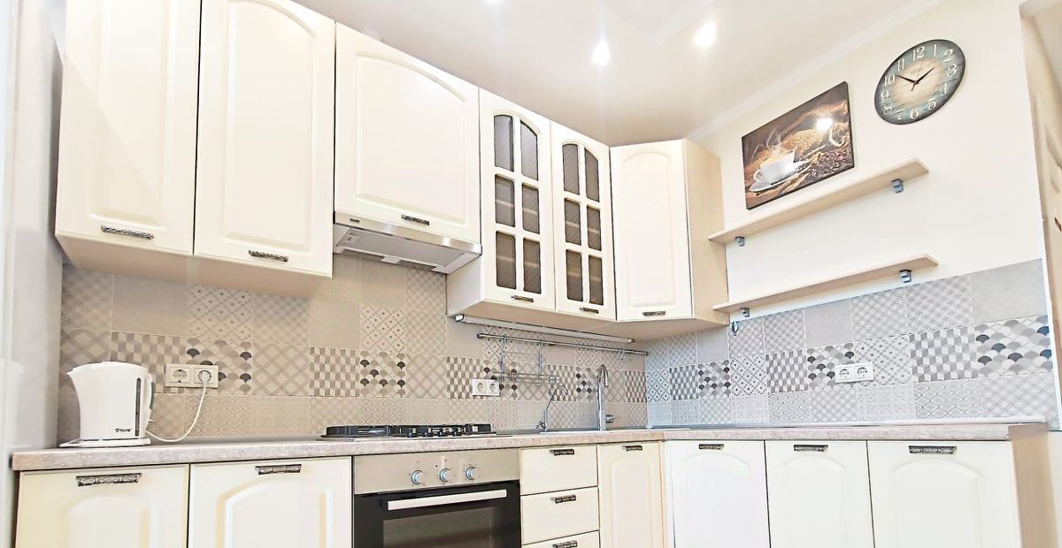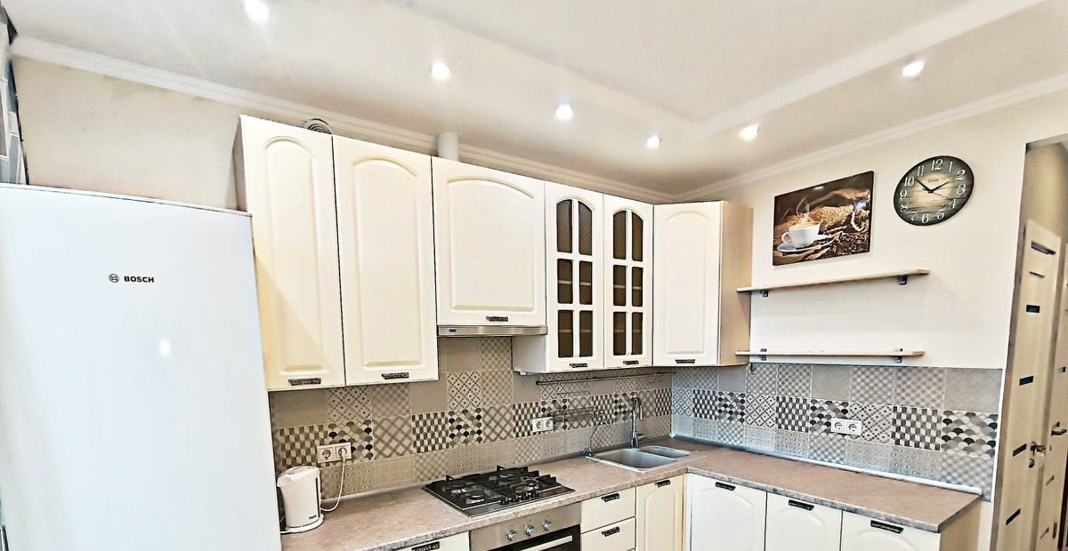 Кухня: 10 кв.м., угловой кухонный гарнитур под единой столешницей, газовая варочная панель BOSCH , духовой шкаф с поддувом, грилем и множеством других функций BOSCH, вытяжка, посудомоечная машина BOSCH. Холодильник 2-е камеры (ноу фрост) BOSCH, электрочайник, стол обеденный-раскладывается , стулья. Стиральная машина автомат Whirlpool.