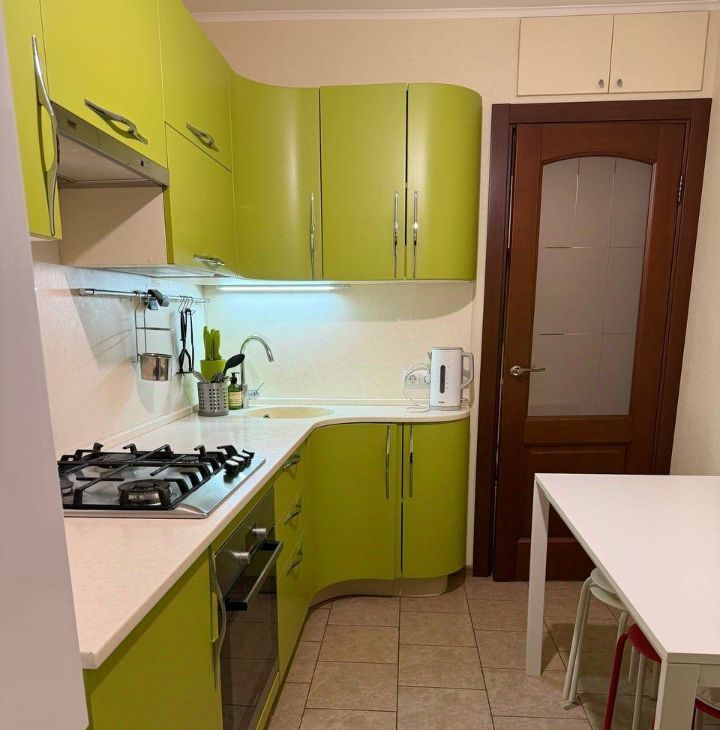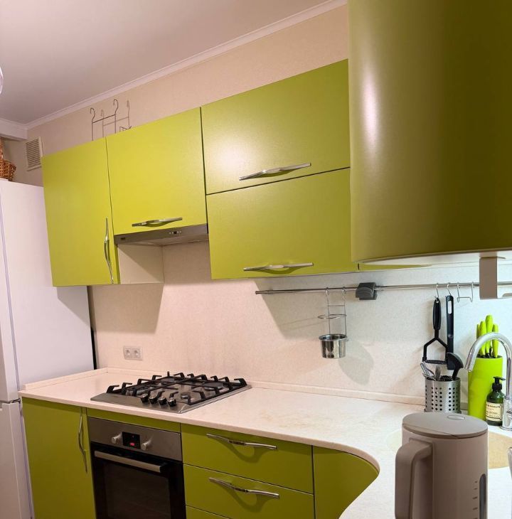 В кухне вся мебель в наличии, также есть холодильник, чайник. Всё очень аккуратно, квартира после ремонта мало амортизировалась.