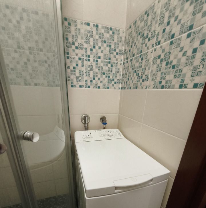 Две смежные комнаты очень хорошо зонированы. Спальня с полноценной кроватью и большим встроенным шкафом. Гостиная укомплектована раскладывающимся диваном, креслом и телевизором. Окна выходят в тихий двор, в большой комнате застекленная лоджия.
