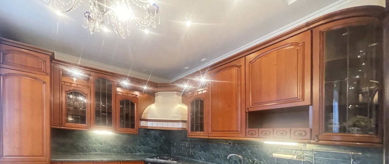 Высокие потолки, пол - натуральный штучный дубовый паркет. Во всей квартире несколько уровней освещения.