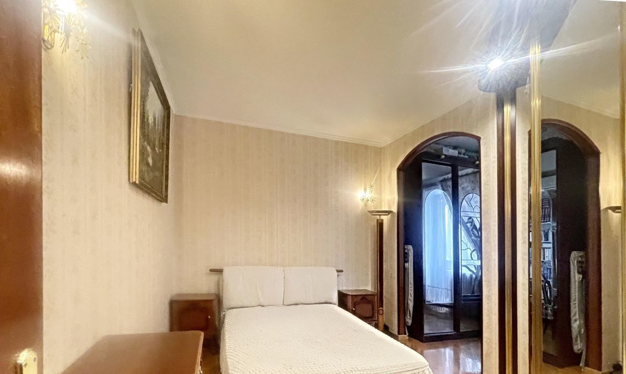Отдельная спальня с широкой кроватью и вместительным зеркальным встроенным шкафом, комфортный кабинет с выходом на балкон, красивый письменный стол изготовленный по индивидуальному заказу.