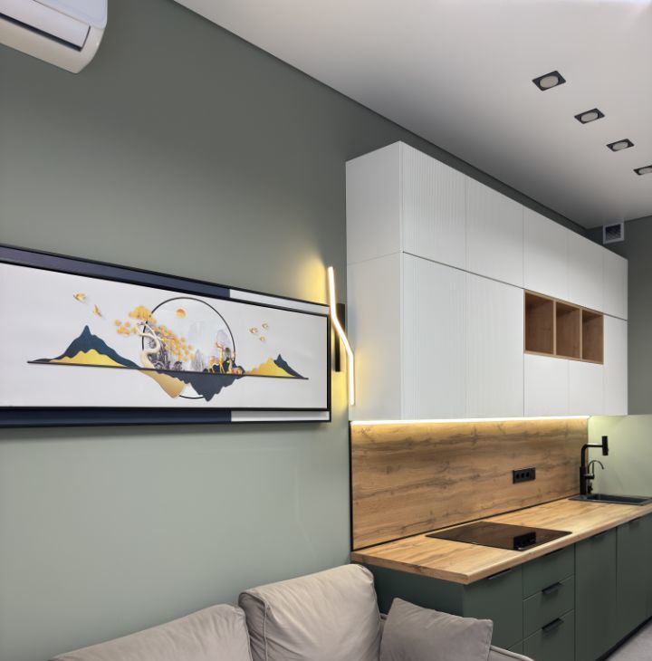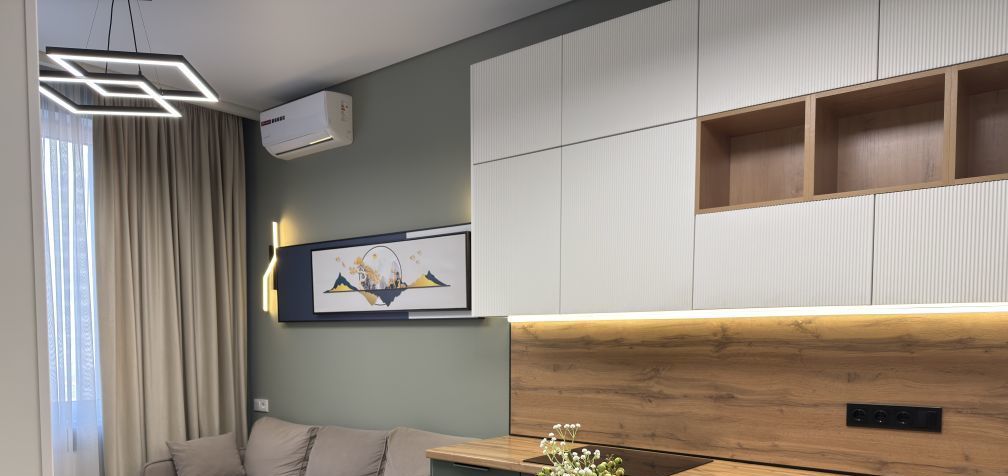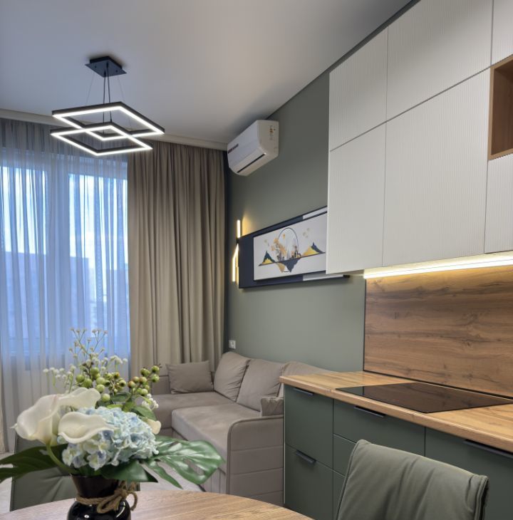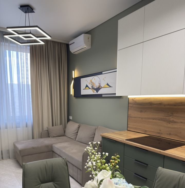 Просторная кухня-гостиная с удобным раскладывающимся диваном, телевизором Смарт, кондиционером).
