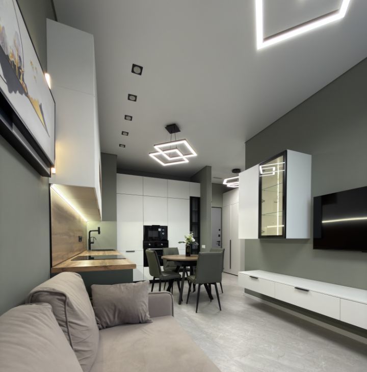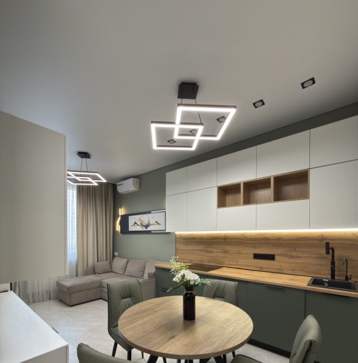 Многоуровневая система освещения, которая позволяет создать гармонию и уют, атмосферу по настроению.