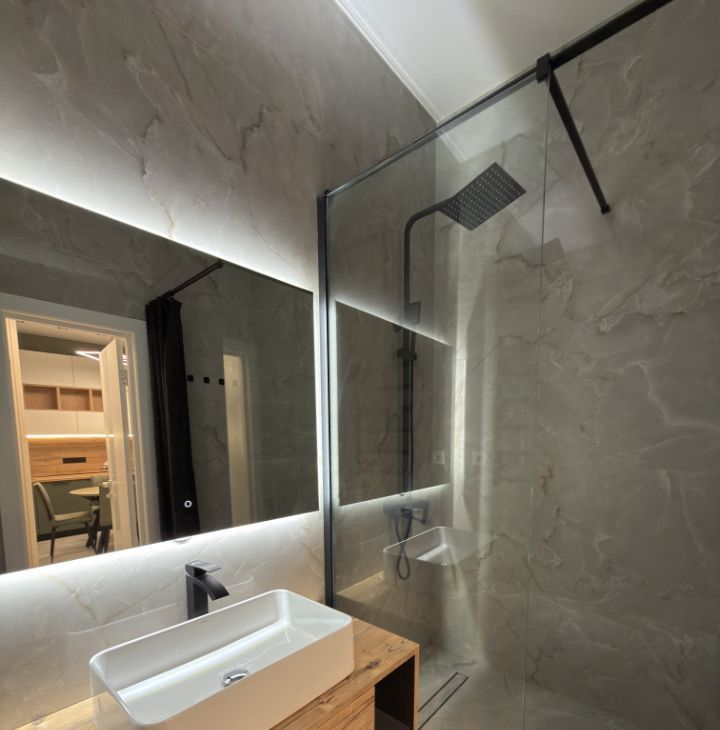 В спальне вместительная система хранения, кондиционер, телевизор Смарт, удобная кровать с хорошим матрасом и подъемным механизмом.