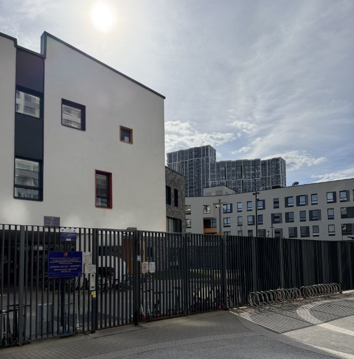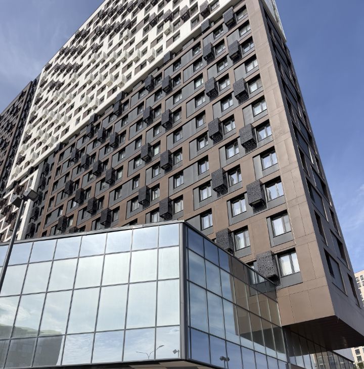 Дом - монолитный, окна выходят во двор. Есть консьерж. В подъезде 3 лифта - 1 грузовой и 2 пассажирских. Есть подземная парковка.
