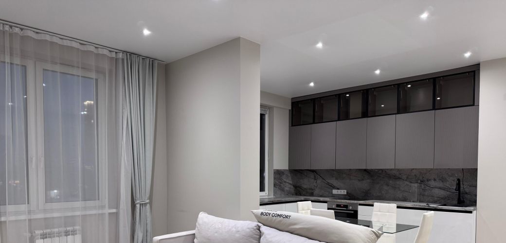 Внутри квартиры вы найдёте всё необходимое для комфортного проживания: просторная кухня и комнаты обставлены современной мебелью. К вашим услугам холодильник, телевизор и стиральная машина. В квартире есть два совмещённых санузла, которые оборудованы ванной и душевой кабиной, что особенно удобно для семейного проживания.