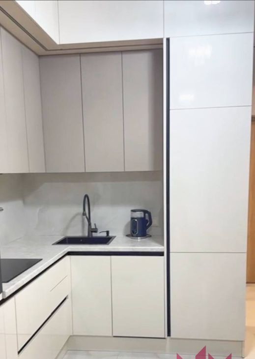 Квартира готова к заселению, есть все для комфортной жизни, кухня оснащена современной мебелью и необходимой техникой.