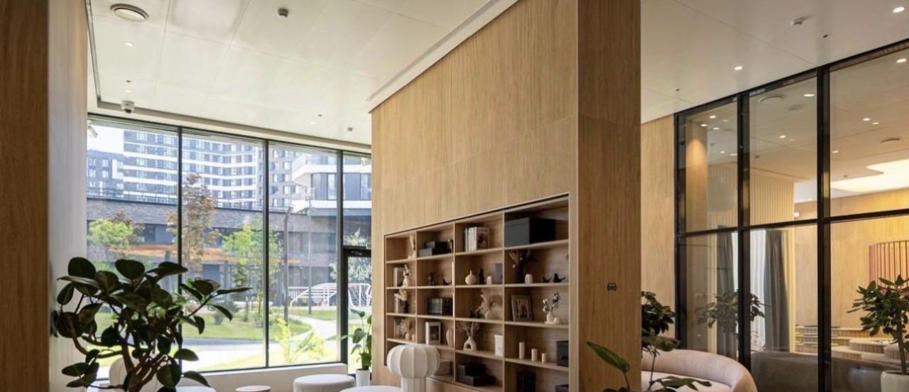 В лобби дома премиальная дизайнерская отделка и мебель. Лифты премиум класса.