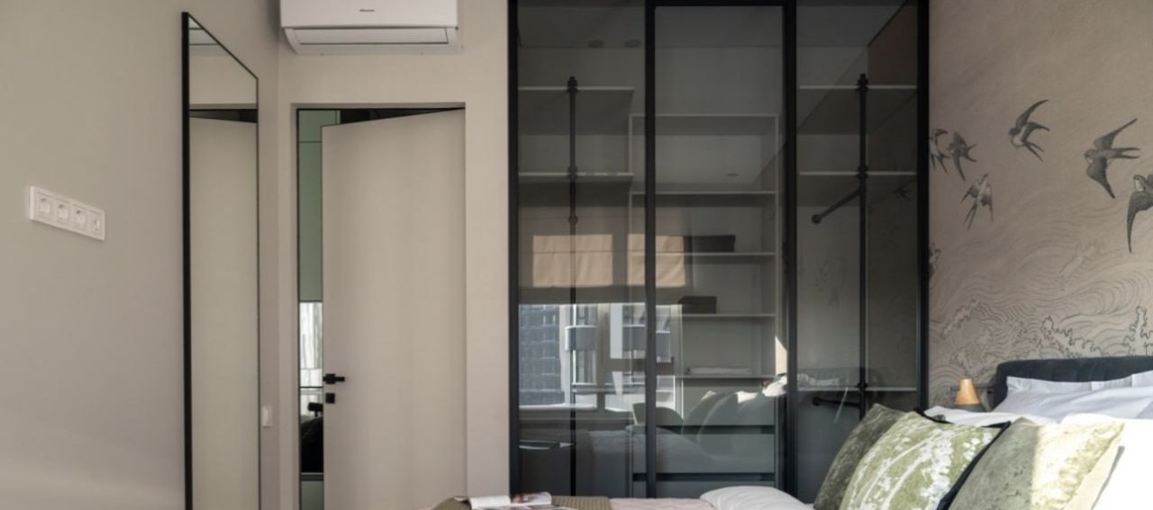 Спальная комната полностью меблирована. Мини гардеробная с автоматической подсветкой. Кондиционер.