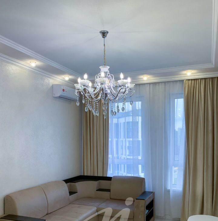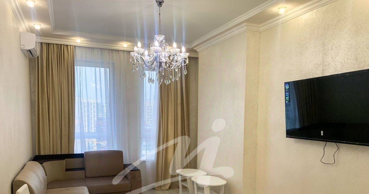 Изысканный дизайнерский ремонт гармонично сочетает эстетику и функциональность. Улучшенная планировка включает роскошную кухню-гостиную, уединённую жилую комнату и элегантный совмещенный санузел. Квартира полностью укомплектована премиальной техникой: от встроенной посудомоечной машины до кондиционера и высокоскоростного интернета. Всё для Вашего безмятежного быта.