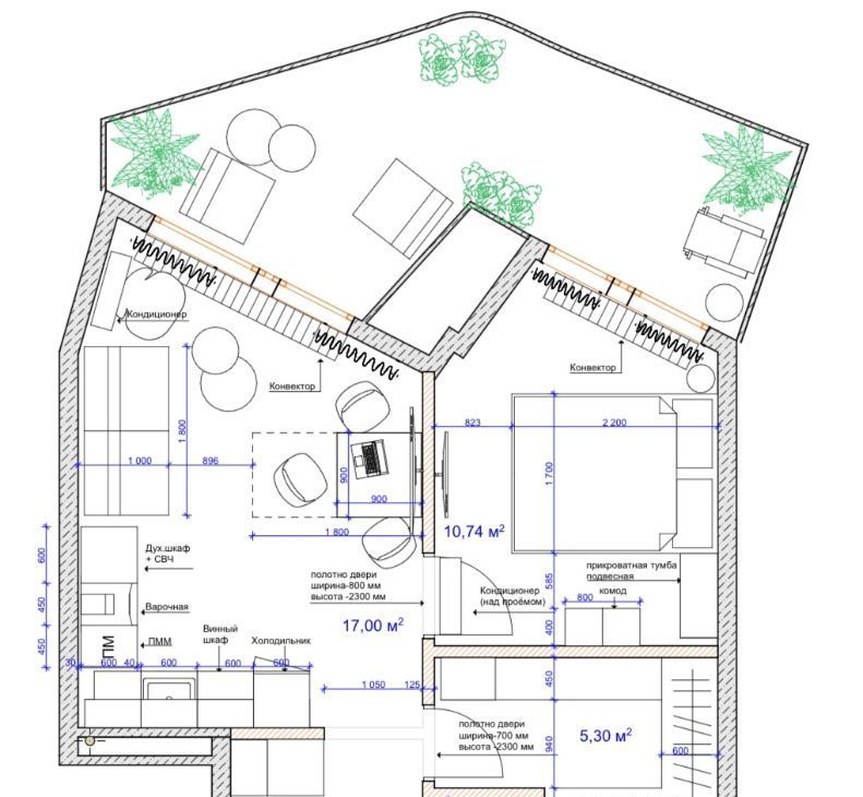 Идеальная планировка: большая кухня-гостиная, отдельная спальня, вместительная гардеробная, выход на террасу и из спальни, и из кухни.