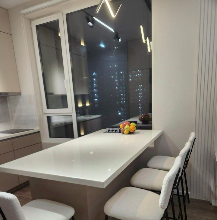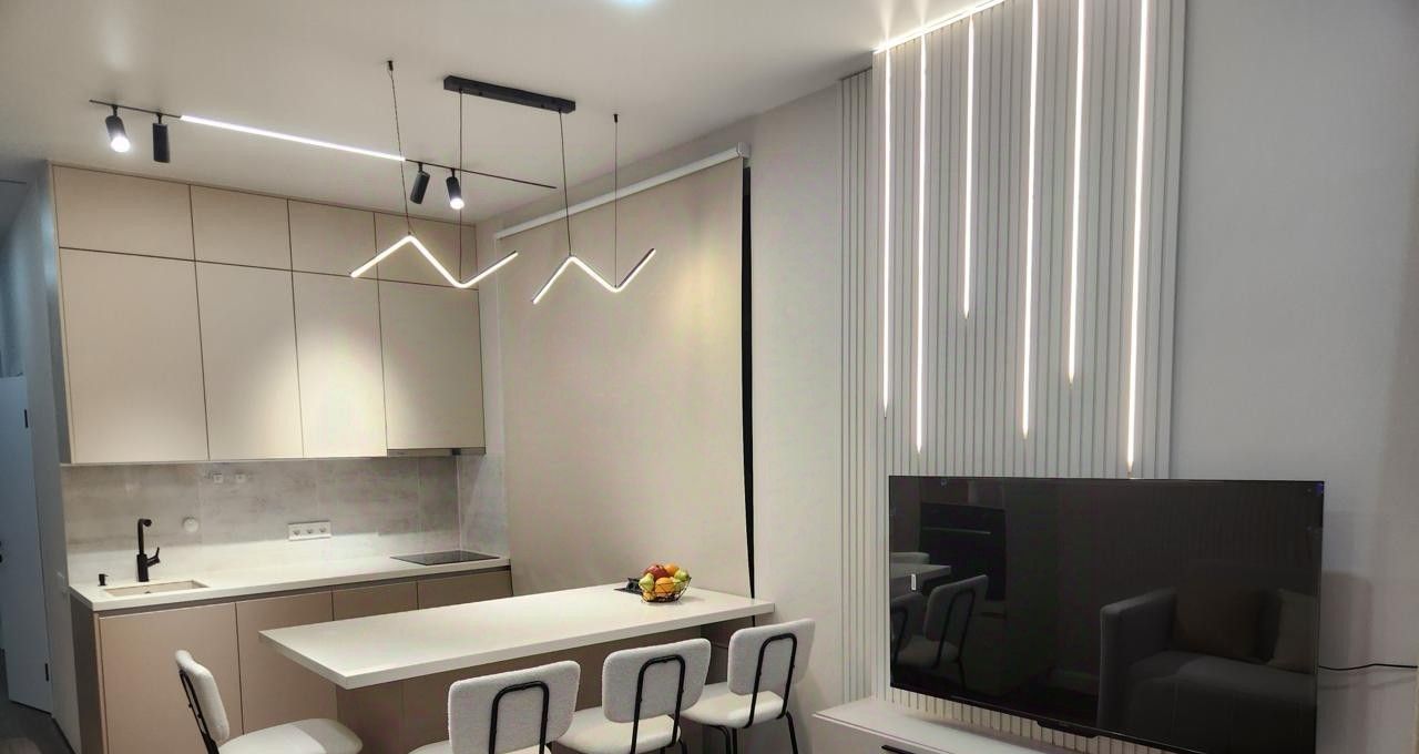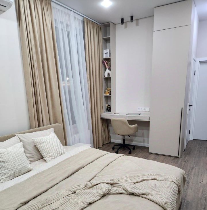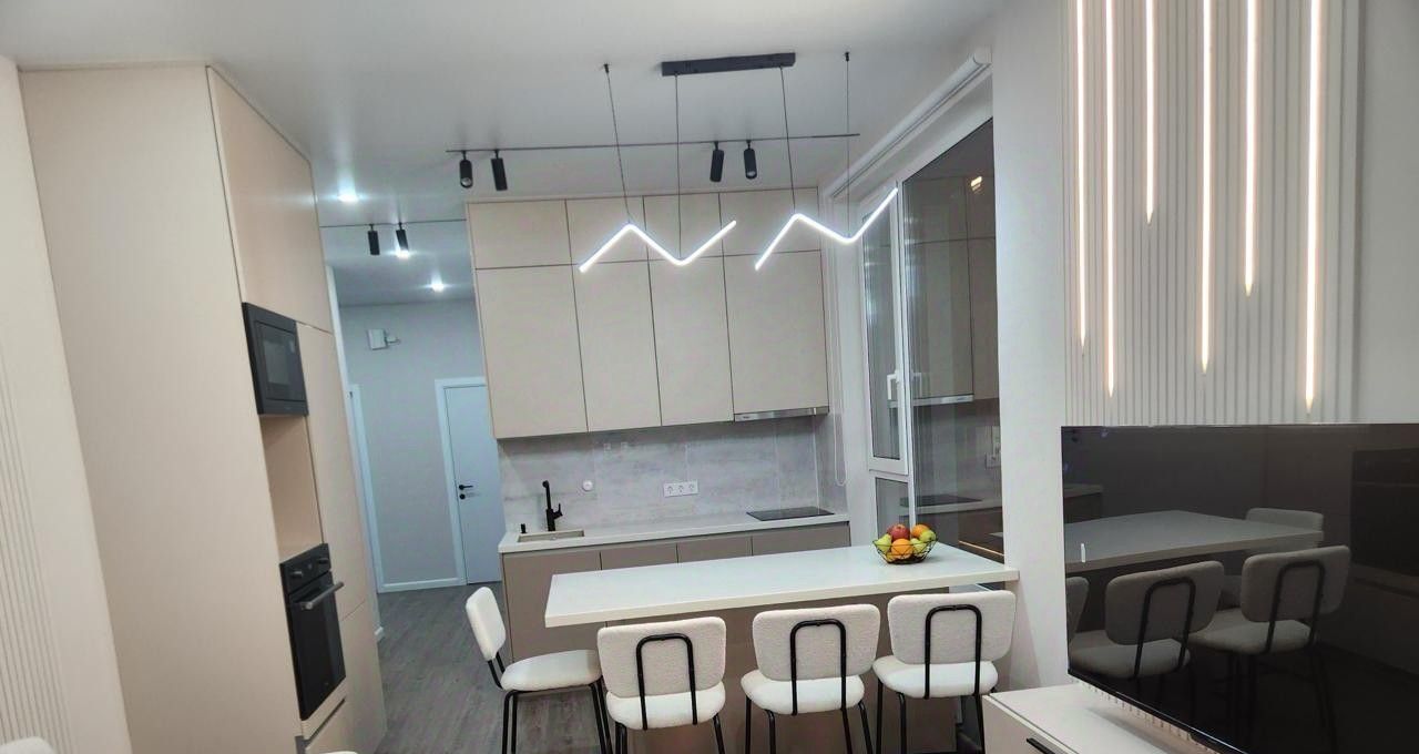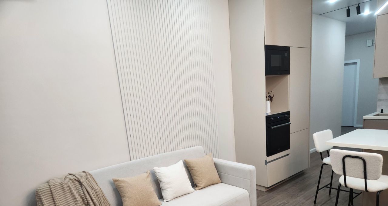 Квартира полностью мебелирована и оснащена техникой: посудомоечная машина, духовка, варочная панель, микроволновка, вытяжка, измельчитель, фильтр и диспенсер для воды. Для комфортного проживания есть посуда, постельное белье и полотенца.