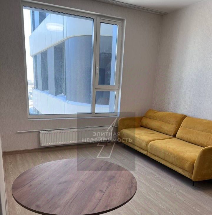Сдается новая евродвушка площадью 40 квадратных метров на 18 этаже в жилом комплексе Символ по адресу улица Крузенштейна дом 7. Квартира после качественного ремонта укомплектована современной мебелью и бытовой техникой в идеальном состоянии. В планировке выделена уютная спальня с панорамным окном и просторная кухня гостиная с ярким диваном и обеденной зоной. Современный санузел отделан широкоформатной плиткой и оборудован стиральной машиной и удобной раковиной со столешницей. В прихожей установлены зеркальный шкаф купе и функциональная гардеробная секция.